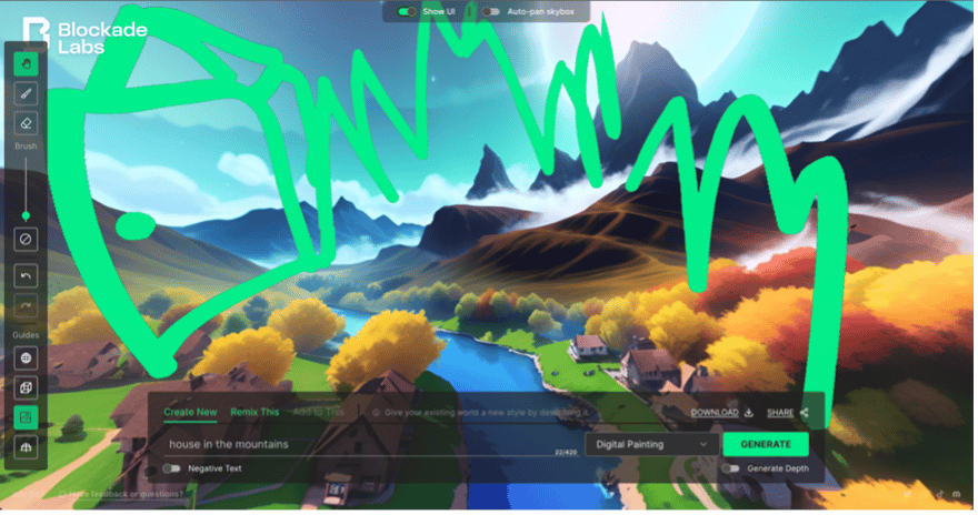 BlockadeLabs has created a new tool which allows any user to draw a few lines and describe their vision before quickly generating a downloadable 360-degree skybox.