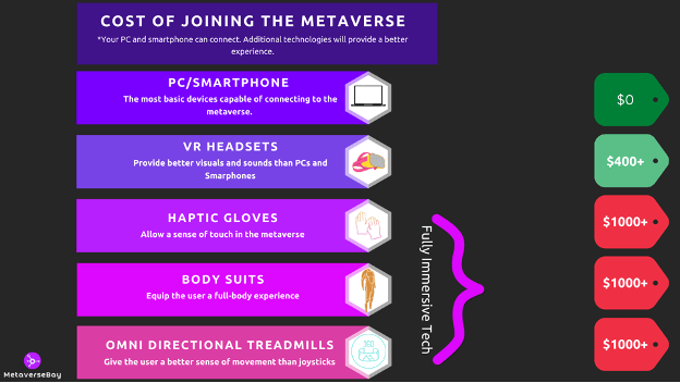 The cost required to jump into the metaverse can vary greatly depending on how immersive you want your experience to be.