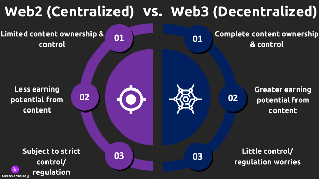 Web3 pledges a transfer of power to the users granting them complete ownership of the content they share, fairer profit sharing, and regulation determined by users (we will touch on this later).